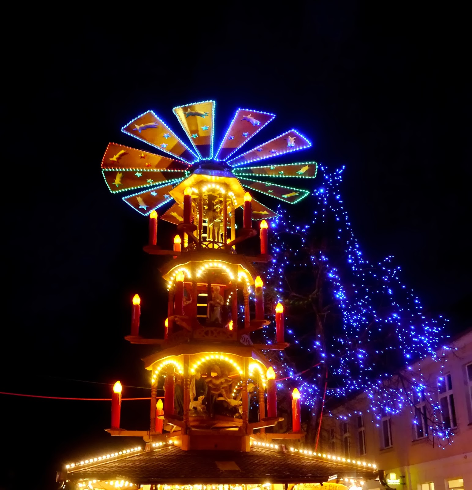 That evening we arrived back to Prague and strolled around the Christmas market in the new town area, Wenceslas Square.  Only a few of the stalls were open, being Christmas Eve, but there was still a glorious bright Christmas tree, and other things to see!  After passing through that area and winding through the maze of streets we ended the night in the Old Town Square with a delicious Christmas eve dessert!